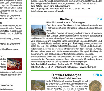 Die Region um den Teutoburger Wald hat vieles zu bieten: Erholsame Angebote wie Thermen oder Landschaftsparks befinden sich in den zahlreichen Badestädten der Gegend. Als eher naturbezogene Attraktionen können die besteigbaren Externsteine oder auch die Dörent...