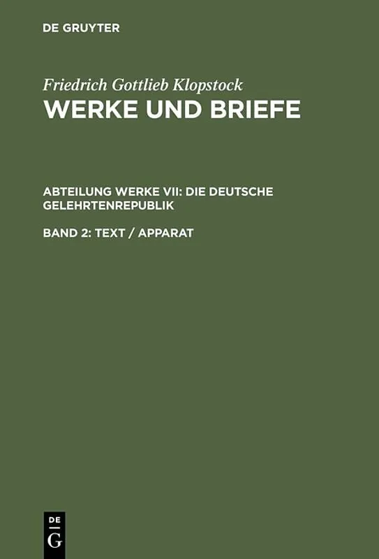 The volume contains textual material, most of it unpublished hitherto, for the second part of the "Republic of Scholars", which Klopstock had planned but never executed. In addition, it presents the early printed version of the "Laws of the Republic of Schola...
