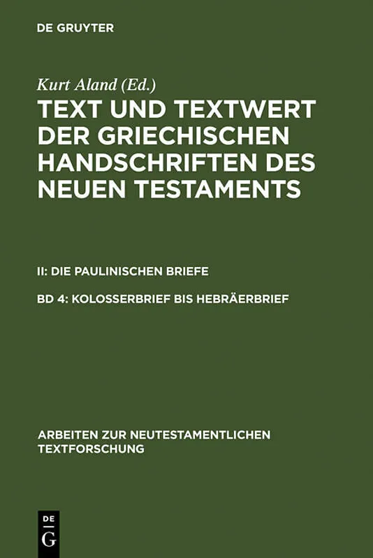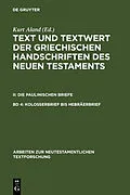 Text und Textwert der griechischen Handschriften des Neuen Testaments.... / Kolosserbrief bis Hebräerbrief
