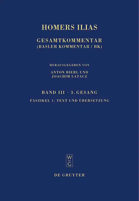Der vorliegende Text wurde aus Martin L. Wests Ilias-Edition in der Bibliotheca scriptorum Graecorum et Romanorum Teubneriana (Stuttgart/Leipzig/München 1998/2000) übernommen. Für die Belange des Kommentars hat Martin West den apparatus criticus neu gestaltet...