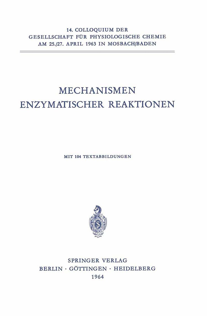 Inhalt 1. Hauptthema: Proteinstruktur und Katalyse.- Einführende Betrachtungen.- Chemische Reaktivität von Proteinen.- Kinetic and spectrophotometric investigation of the mechanism of ?-chymotrypsin action.- Beziehungen zwischen Struktur und Wirkung bei Hydrol...