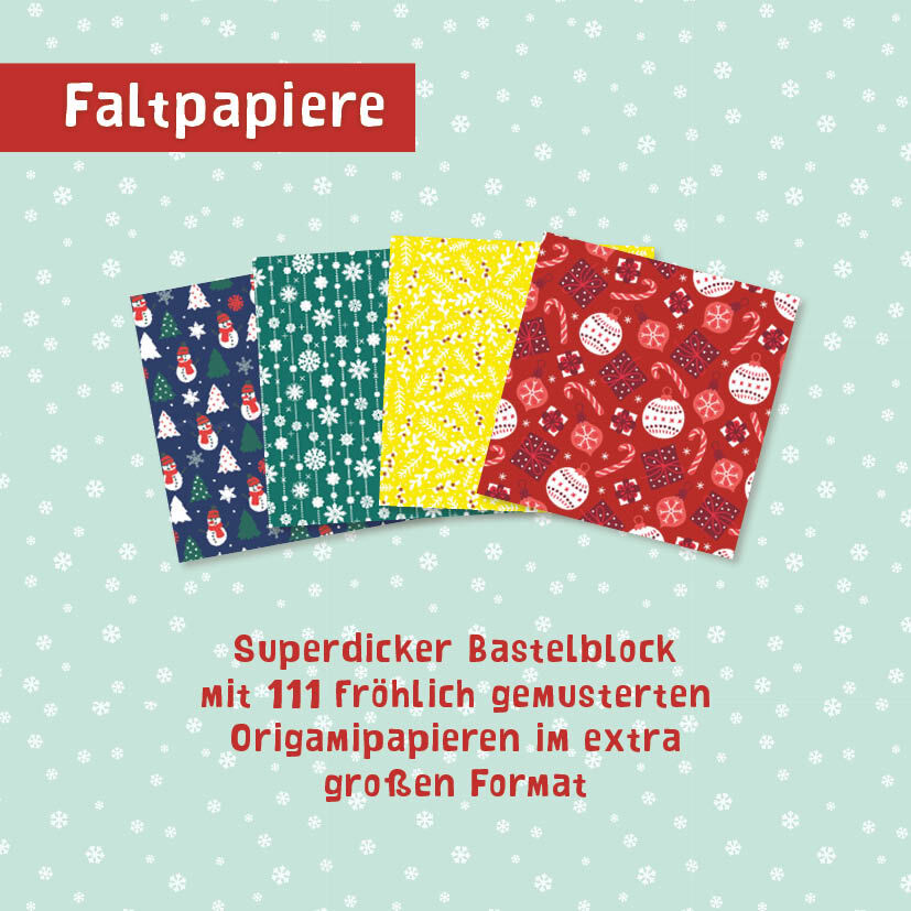 Großer Weihnachts-Origamispaß für kleine Faltkünstler! Mit 111 weihnachtlichen Origamipapieren und kinderleichten Schritt-für-Schritt-Anleitungen für Kinder ab 5 Jahren entstehen im Handumdrehen viele weihnachtliche Projekte. So wird spielend einfach die Fein...