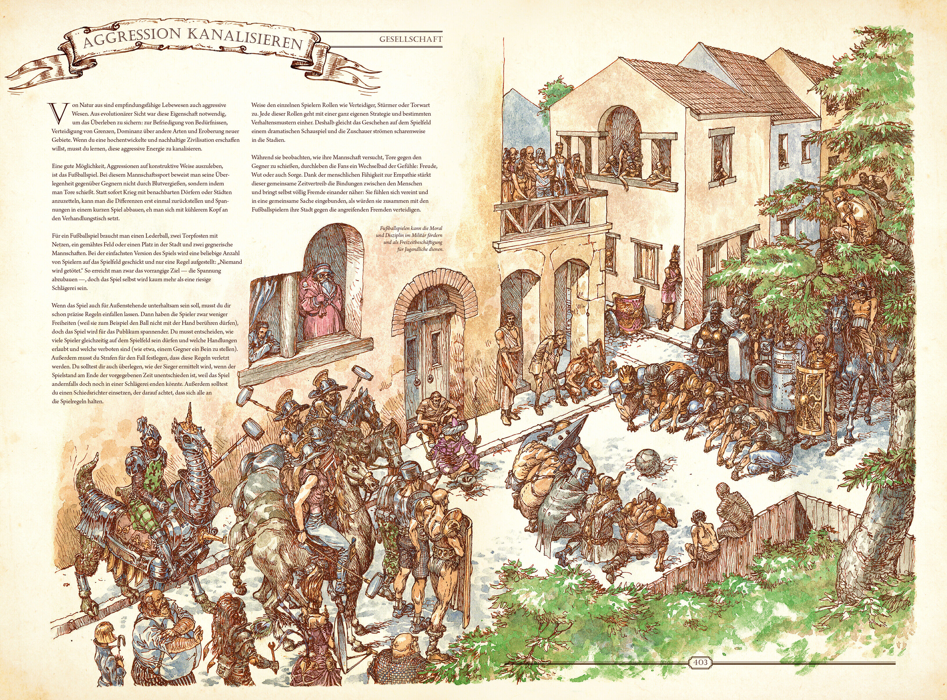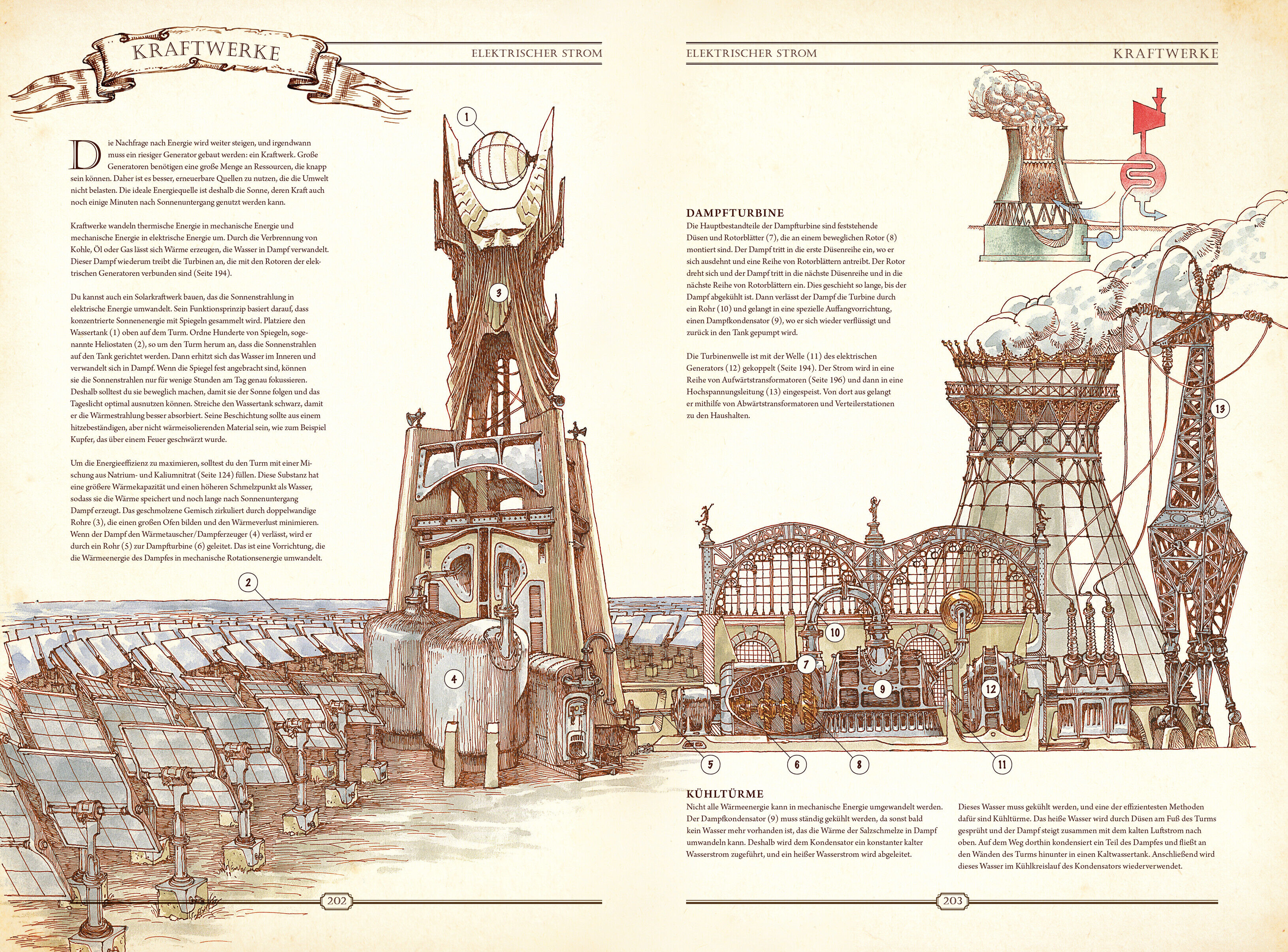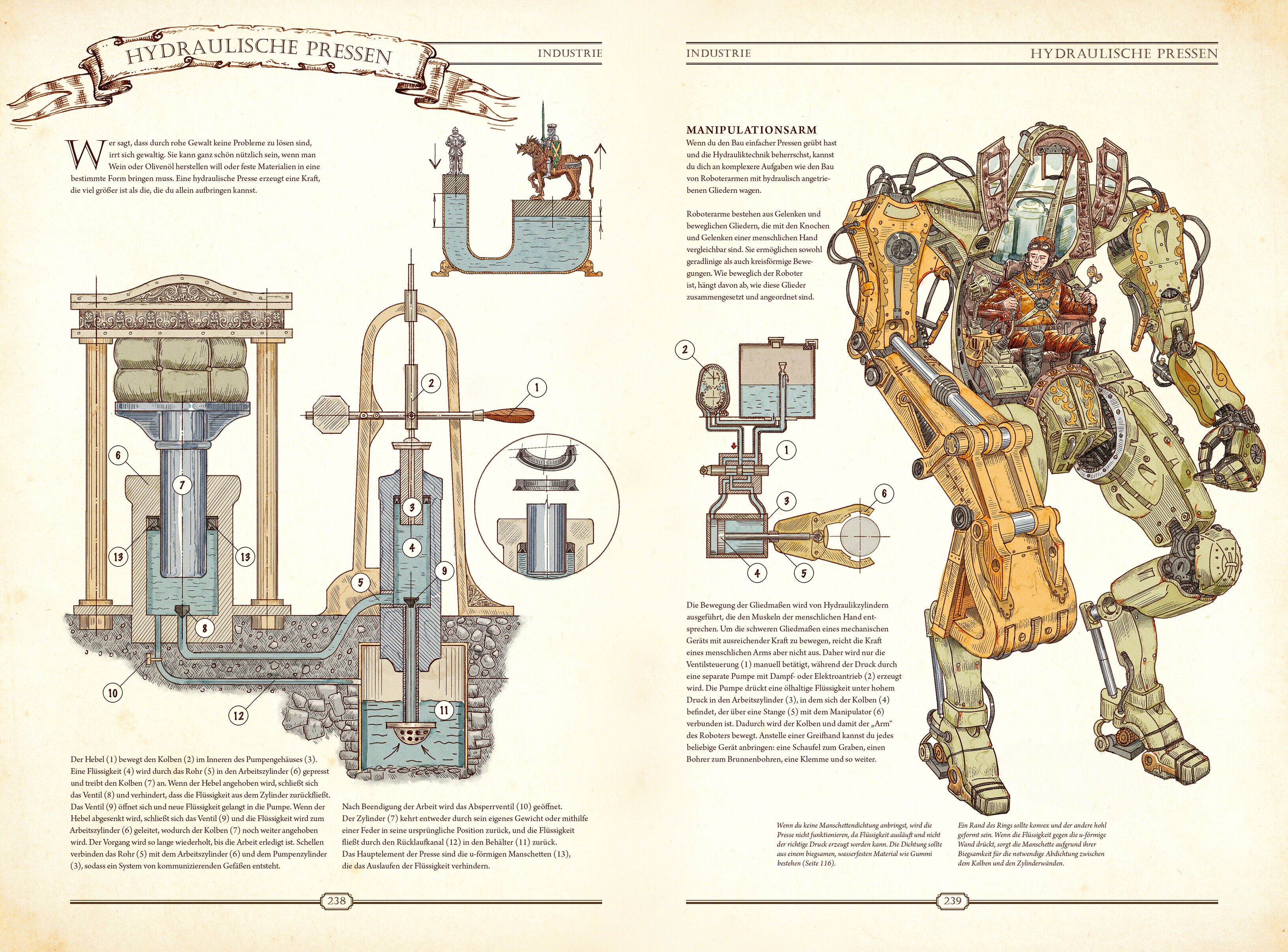 Es ist die außergewöhnliche Verschmelzung von Ingenieurskunst und mittelalterlicher Ästhetik, die dieses Buch zu einem Kunstwerk macht. Es gibt fantastische Welten zu entdecken, in denen mittelalterliche Bauern mit Fahrrädern pflügen und Ritter auf mechanischen Rössern kämpfen.