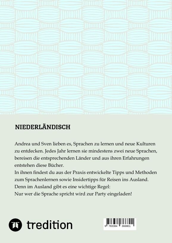 In diesem Buch lernt der Leser anhand von zweisprachigen Kurzgeschichten die niederländische Sprache und bekommt Tipps für Reisen in die Niederlande. Die Texte umfassen einen Gesamtwortschatz von ca. 6000 Wörtern. Am Anfang des Buches gibt es Tipps zum erfolgr...