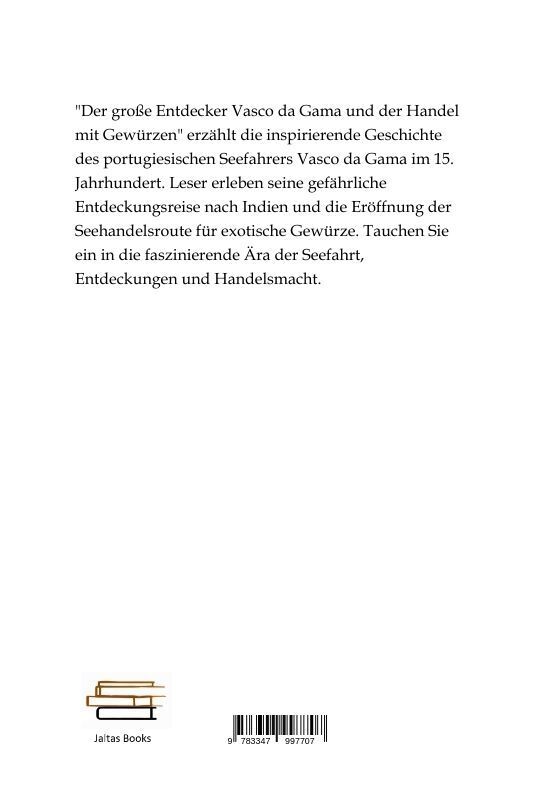 "Der große Entdecker Vasco da Gama und der Handel mit Gewürzen" erzählt die inspirierende Geschichte des portugiesischen Seefahrers Vasco da Gama im 15. Jahrhundert. Leser erleben seine gefährliche Entdeckungsreise nach Indien und die Eröffnung der Seehandelsr...