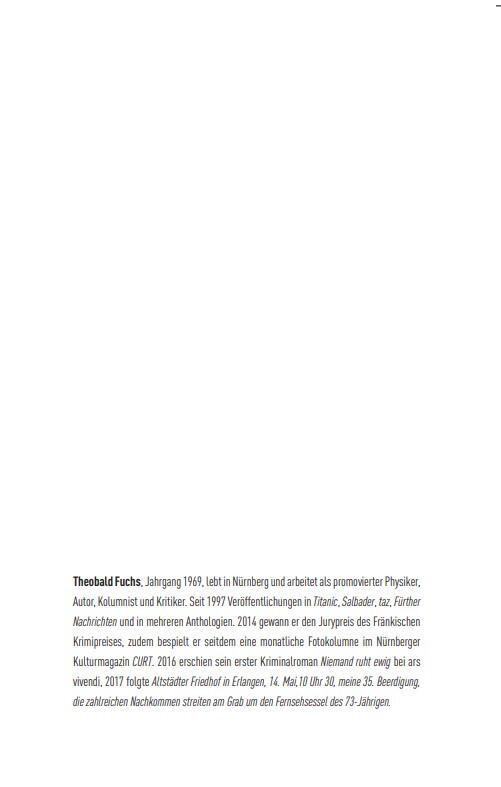 Ein meisterhafter Gostenhof-Krimi von Local Hero Theo Fuchs Bei einem schrecklichen Zugunglück nutzt Bernd F., dessen Leben in eine Sackgasse geraten ist, die Gelegenheit, in die Identität eines der getöteten Passagiere zu schlüpfen. Mit großer Behutsamkeit üb...