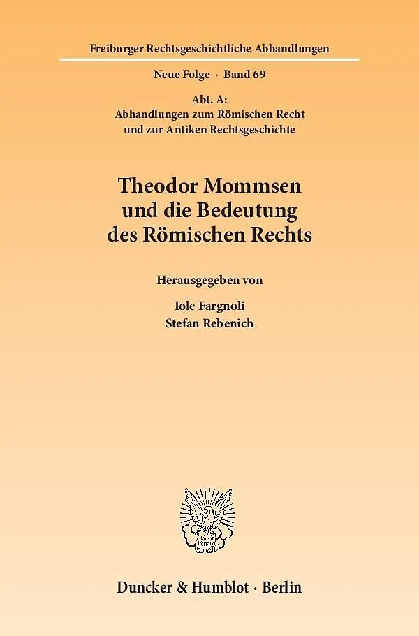 Was hat der Alt- und Rechtshistoriker Theodor Mommsen dem Römischen Recht zu verdanken? Was haben die Altertumswissenschaften, was hat die Rechtswissenschaft ihm zu verdanken? Der Band versucht diese Fragen aus der interdisziplinären Perspektive der heutigen F...Was hat der Alt- und Rechtshistoriker Theodor Mommsen dem Römischen Recht zu verdanken? Was haben die Altertumswissenschaften, was hat die Rechtswissenschaft ihm zu verdanken? Der Band versucht diese Fragen aus der interdisziplinären Perspektive der heutigen Forschung zu beantworten und versammelt die Beiträge international renommierter Altertums- und Rechtswissenschaftler, die auf einer Tagung an der Universität Bern im Mai 2012 gehalten wurden.