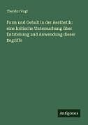 Form und Gehalt in der Aesthetik: eine kritische Untersuchung über Entstehung und Anwendung dieser Begriffe