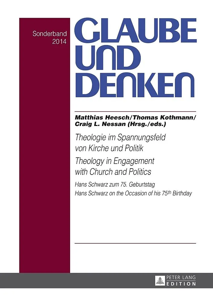 Die 39 Beiträge dieses Sonderbandes beleuchten das Thema Theologie im Spannungsfeld von Kirche und Politik aus unterschiedlichen Perspektiven. Neben historischen Aspekten werden sowohl politisch-zeitgeschichtliche Fragen als auch ethische Problemstellungen bedacht. Weitere Aufsätze widmen sich der praktisch-theologischen Reflexion und Konkretion im Rahmen der christlichen Gemeinde, wie auch der Relevanz des Themas in außereuropäischen politisch-kulturellen Kontexten. Der internationale Autorenkreis setzt sich überwiegend aus Kolleginnen und Kollegen, Schülerinnen und Schülern des Regensburger Systematikers Hans Schwarz zusammen. Im Rahmen der Regensburger Summer School 2014 haben sie damit auch das Lebenswerk von Hans Schwarz anlässlich von dessen 75. Geburtstags gewürdigt, in dem das theologisch geleitete Umgehen mit der säkularen Welt eine wichtige Rolle spielt. The 39 contributions to this special issue develop the theme Theology in Engagement with Church and Politics from a variety of perspectives. Alongside the exploration of historical aspects, both contemporary political questions and ethical dilemmas are examined. Further contributions are devoted to the reflection upon practical theology, Christian congregational praxis, and contextual studies, which demonstrate the political and cultural relevance of this theme beyond Europe. The international circle of authors is constituted largely of colleagues and students of Professor Hans Schwarz, systematic theologian from Regensburg, Germany. In conjunction with the 2014 University of Regensburg Summer School, the authors dedicate this volume to the lifetime achievement of Hans Schwarz on the occasion of his 75th birthday, in whose work the engagement of theology with the secular world plays a major role.