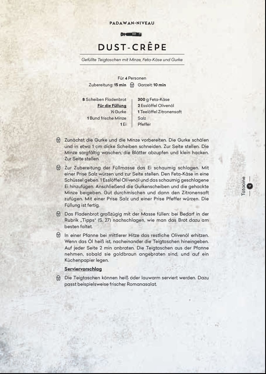 BEGLEITE UNS AUF EINE KULINARISCHE ENTDECKUNGSREISE IN DIE ENTFERNTESTEN WINKEL DES STAR WARS-UNIVERSUMS: VON TATOOINE NACH KAMINO, ÜBER BESPIN, KASHYYYK UND MUSTAFAR HIN NACH JAKKU. 40 einzigartige Rezepte aus einer weit, weit entfernten Galaxis lassen selbst...