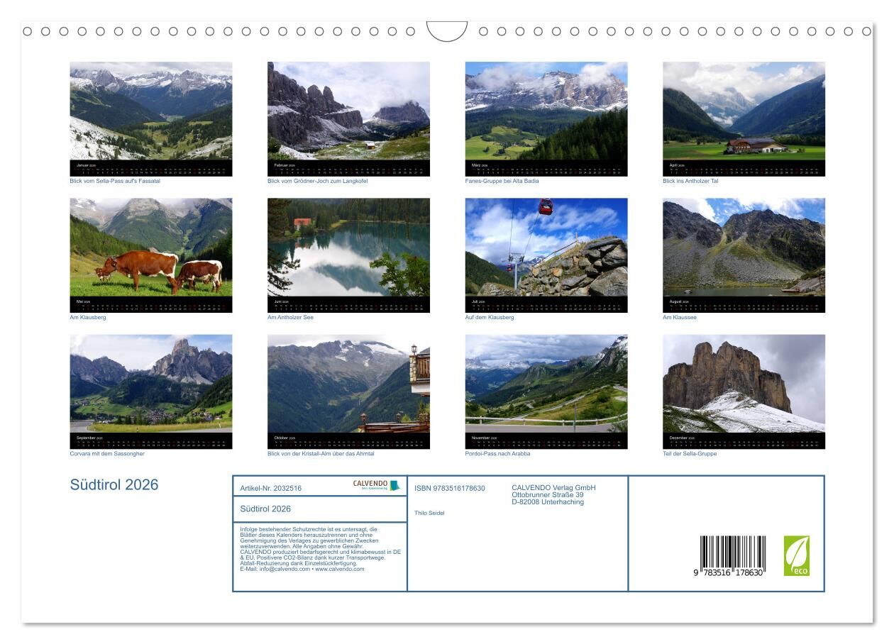 Südtirol 2026 (Wandkalender 2026 DIN A3 quer), CALVENDO Monatskalender