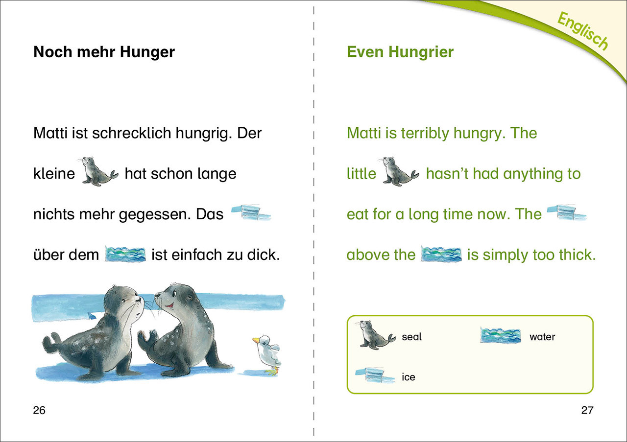 Der kleine Seehund Matti liebt es, mit seiner Freundin Finja im Schnee zu tollen. Sie rutschen mit ihren Bäuchen übers Eis oder spielen Eisbär. Besonders aufregend wird es, als die beiden einen Schatz finden! Mit der Reihe Bildermaus - Mit Bildern Englisch ler...
