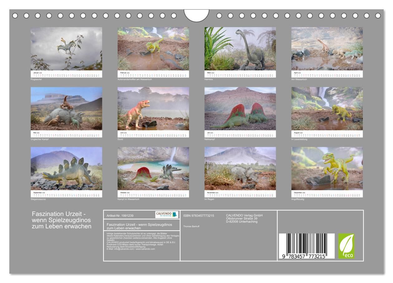 Dinosaurier faszinieren Jung und Alt. Dieser Kalender zeigt Spielzeugdinos in verschiedensten Situationen und möchte die Fantasie von Kindern genau wie die der Erwachsenen anregen.