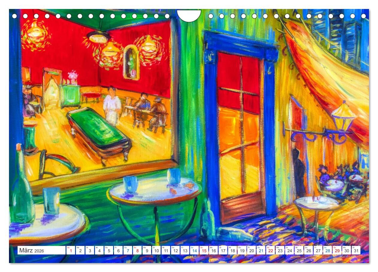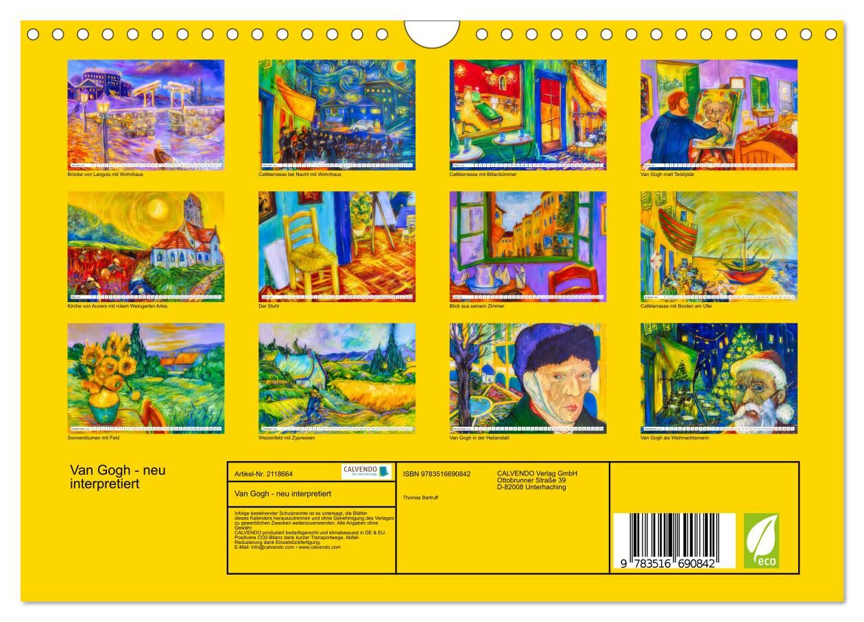 Van Gogh, wer kennt ihn nicht. In diesem Kalender wurden seine Werke von einem ortsansässigen Künstler neu interpretiert. In Zusammenarbeit mit dem Fotografen entstand ein farbenfrohes Potpourri , das mit einem Augenzwinkern an Van Gogh erinnert.