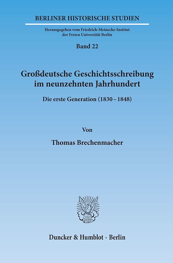 Großdeutsche Geschichtsschreibung im 19. Jahrhundert: damit sind die vielfältig ausgeprägten Ansätze vor allem konservativer, dem Katholizismus nahestehender Historiker bezeichnet, der dominanten borussianischen Geschichtsdeutung entgegenzutreten. Wollte diese...