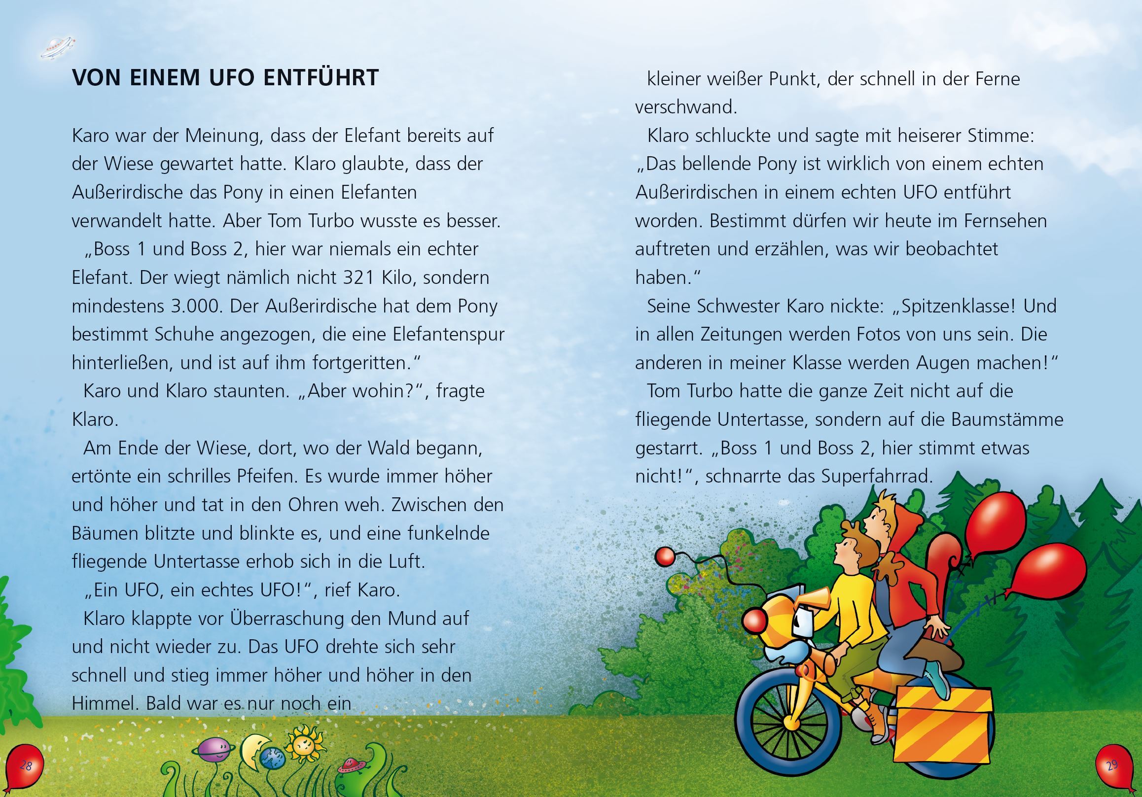 Im Zirkus gibt es eine neue Sensation: Zum ersten Mal wird ein bellendes Pony vorgeführt. Doch kaum trabt es in die Manege, wird es von Außerirdischen entführt. TOM TURBO und seine Freunde Karo und Klaro verfolgen das geheimnisvolle rostrote Wesen aus dem All...