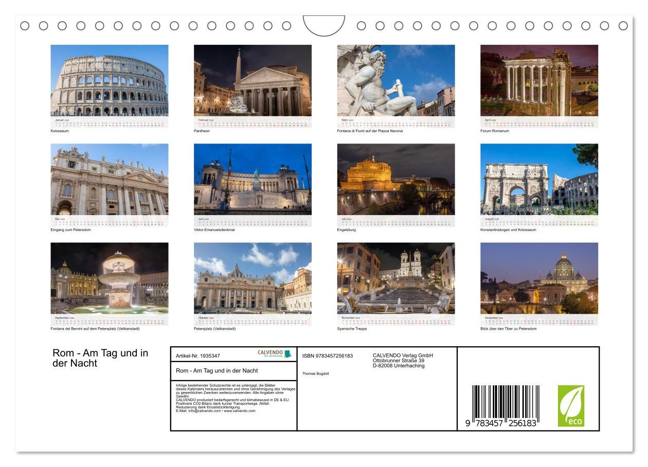 Entdecken Sie die ewige Stadt auf eine neue Weise mit unserem Fotokalender. Lassen Sie sich von atemberaubenden Aufnahmen der bekanntesten Sehenswürdigkeiten wie dem Kolosseum, dem Petersdom, der Spanischen Treppe und dem Pantheon verzaubern eingefangen in ihr...