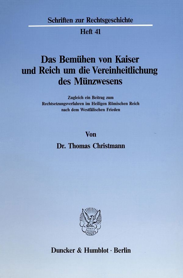 Das Bemühen von Kaiser und Reich um die Vereinheitlichung des Münzwesens.