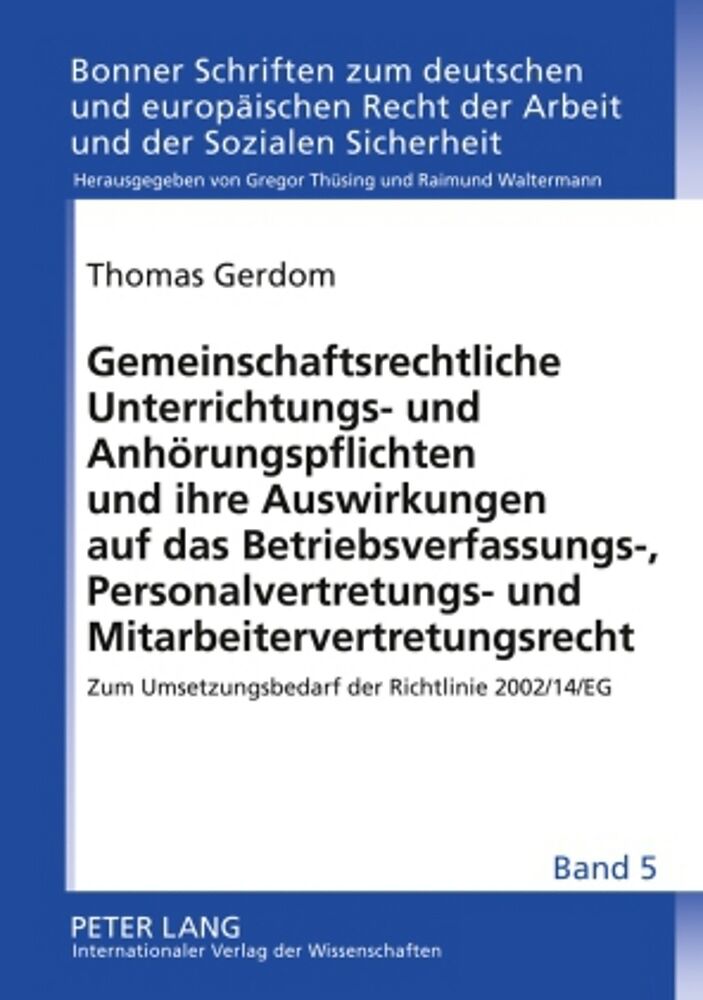 Die Richtlinie 2002/14/EG ist die derzeit umfassendste europäische Regelung zur Mitwirkung der Arbeitnehmer. Sie gibt nicht nur vor, zu welchen Themen und Entscheidungen die betrieblichen Arbeitnehmervertretungen zwingend zu unterrichten und anzuhören sind, so...