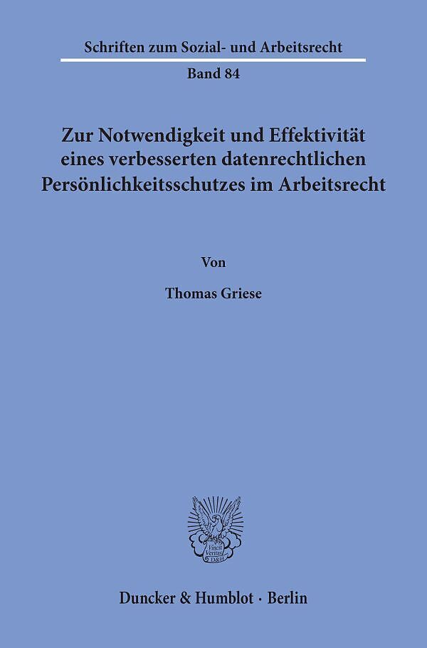 Zur Notwendigkeit und Effektivität eines verbesserten datenrechtlichen Persönlichkeitsschutzes im Arbeitsrecht.