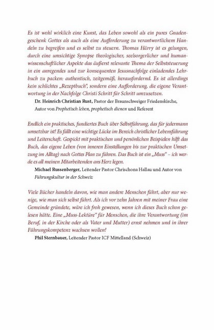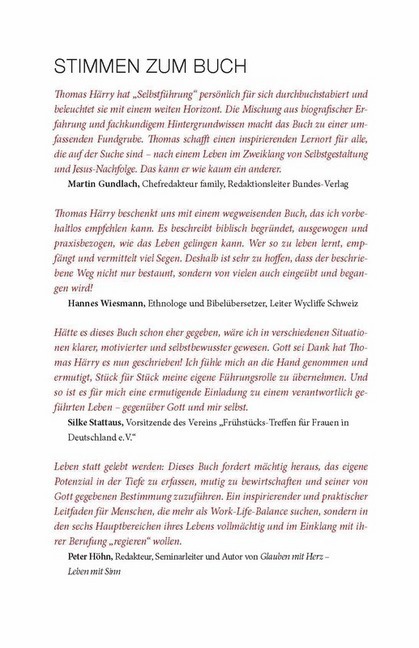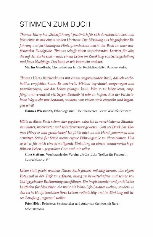 Anhand praktischer Anregungen sowie vieler persönlicher Beispiele zum Thema Selbstführung macht Thomas Härry ("Echt und stark", "Das Geheimnis deiner Stärke", "Voll vertrauen") engagierten Menschen Mut, sich auf Gott auszurichten und das eigene Leben gelassen,...