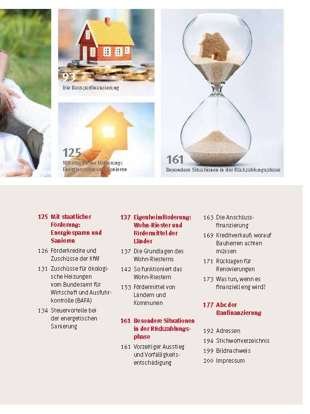 Kaufen? Bauen? Oder finanzieren? Bankdarlehen, Bausparvertrag, Grundschuld und Hypothek Energiesparen und Sanieren mit staatlicher Förderung Lohnt sich Wohn-Riester? Was ist in der Rückzahlungsphase zu beachten? Aktuell: Alle Checklisten auch zum Download und ...