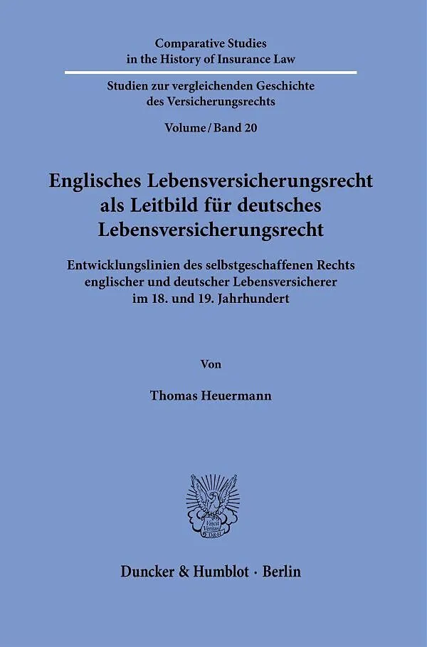 Die englischen Versicherer sollen mit ihrer Präsenz auf den kontinentaleuropäischen Versicherungsmärkten im 19. Jahrhundert die Entwicklung der Versicherungspraxis und des Versicherungsrechts auf dem Kontinent geprägt haben. Detaillierte Analysen zu diesem ver...