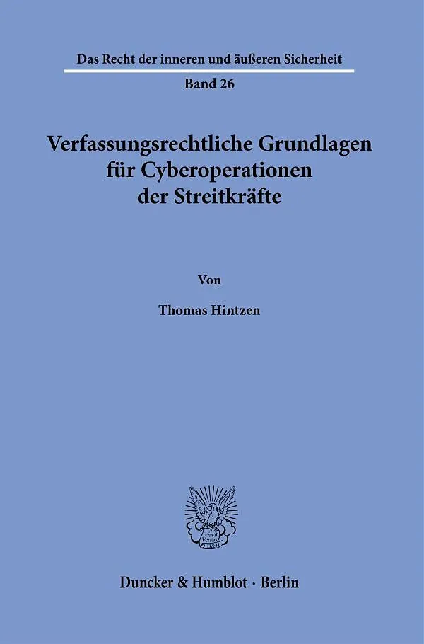Der Autor untersucht, ob und wie die bisherigen wehrverfassungsrechtlichen Regelungen auf neuartige Cyberoperationen der Streitkräfte übertragen werden können. Die Arbeit zeigt auf, dass die Verfassung aufgrund ihrer Normoffenheit grundsätzlich in der Lage ist...