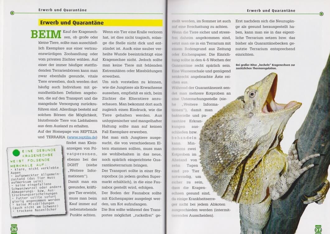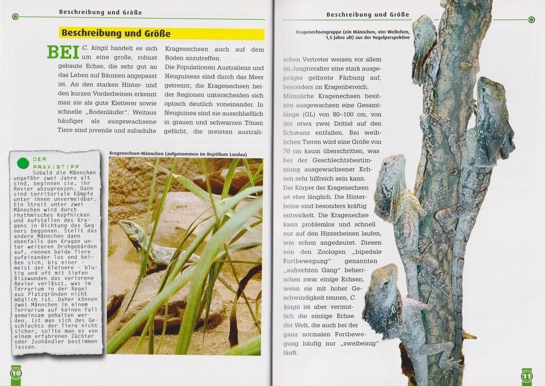 Die imposanten Kragenechsen tragen ihren Namen, weil Sie bei Gefahr sofort ihren meist gelb, rot und orange gefärbten Kragen bis zu 30 aufspannen können. Dieses eindrucksvolle Schauspiel macht die sauriaähnlichen Echsen zu beliebten Tieren in Zoos und Terrarie...