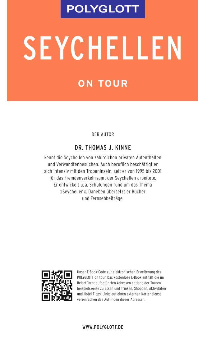 Persönlich & mittendrin! Entspanntes und unabhängiges Reisen mit dem Reiseführer POLYGLOTT on tour Seychellen, der Sie direkt ins Leben der Locals eintauchen lässt. Der Autor Thomas J. Kinne führt in 15 abwechslungsreichen Touren über das Inselparadies. Au...