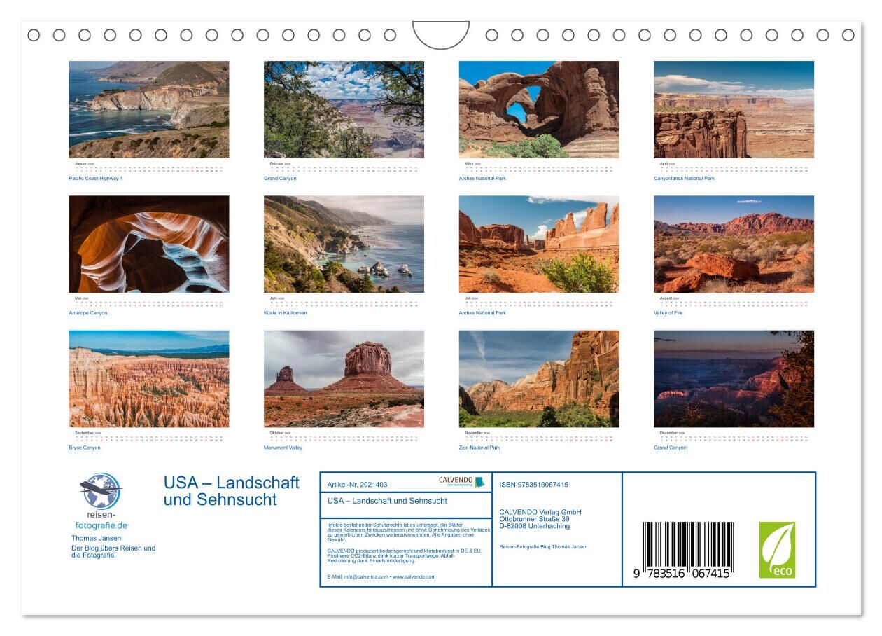 USA Landschaft und Sehnsucht (Wandkalender 2026 DIN A4 quer), CALVENDO Monatskalender