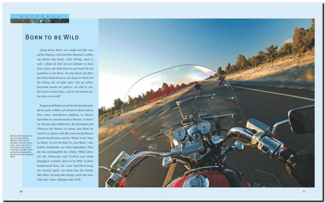 Born to be wild: im Sattel einer Harley oder Honda über die scheinbar endlosen Highways des amerikanischen Westens brausen. Sich den Wind um die Nase wehen lassen und die Freiheit spüren. Hier in den USA ist die Fahrt noch eine echte Herausforderung, in den Be...