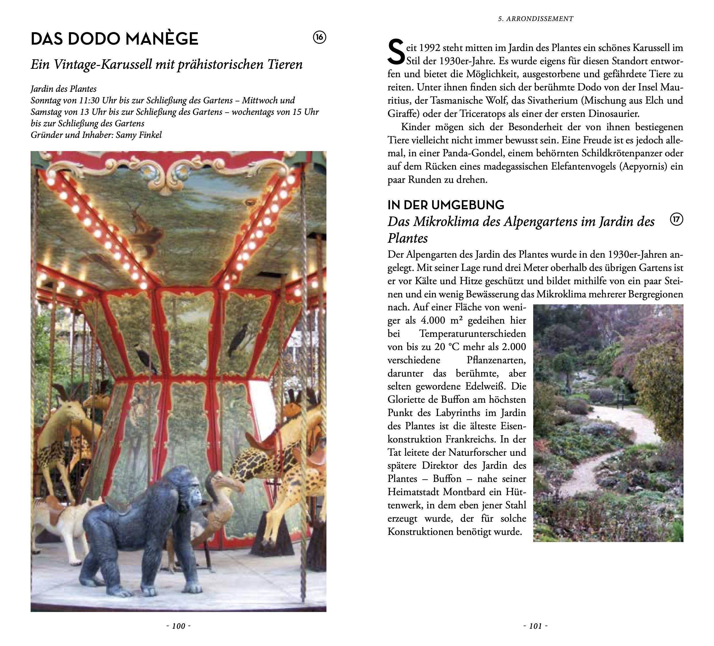Wein von der Feuerwehr, eine geisterhafte Mauer , ein Baum in einer Kirche, ein umgekehrter Phallus an einem wohlbekannten Eingang, ein Luftschutzbunker unter der Gare de l'Est, ein echter bretonischer Leuchtturm nahe Montparnasse, diskrete Hinweise auf ehemalige Bordelle, ein Schutzheiliger der Autofahrer, königliche Monogramme im Innenhof des Louvre, die Verehrung der Dornenkrone Jesu, ein Vintage-Karussell mit prähistorischen Tieren, eine von Dalí entworfene Sonnenuhr , das Haus eines Brunnenmeisters, Einschusslöcher in einem früheren Ministerium, geistliche Pflanzen im Garten eines Presbyteriums, ein geheimnisvolles Freimaurerdenkmal auf dem Marsfeld, eine massive Goldkugel im Hof der Nationalversammlung, ein buddhistischer Tempel in einem Parkhaus , der Einfluss der Bièvre auf das Stadtbild von Paris, ein Blockhaus im Bois de Boulogne...