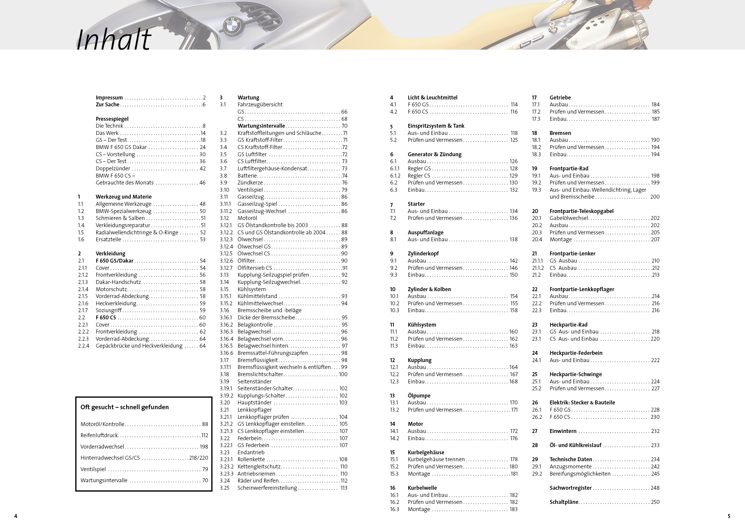 Typenbuch und Reparaturanleitung zu den BMW-Modellen BMW F 650 GS und F 650 CS Das Handbuch zu der BMW-Einzylinderenduro F 650 GS mit Einspritzung und dem Straßenmodell BMW F 650 CS mit Riemenantrieb, wie sie im Jahr 2000 (GS) und 2002 (CS) eingeführt wurden. ...