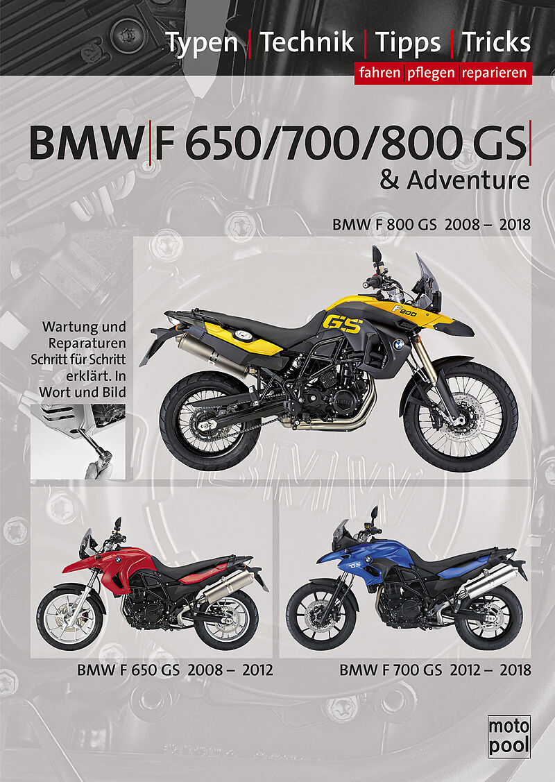 Reparaturanleitung und Wartungshandbuch aus der motopool-Typenbuchreihe zu den BMW Enduro-Modellen F 650 GS (2008-2012), F 700 GS (2012-2018) und BMW F 800 GS & F 800 GS Adventure (2008-2018) mit dem 800 Kubik Paralleltwin-Motor. Sämtliche Modelle dieser B...