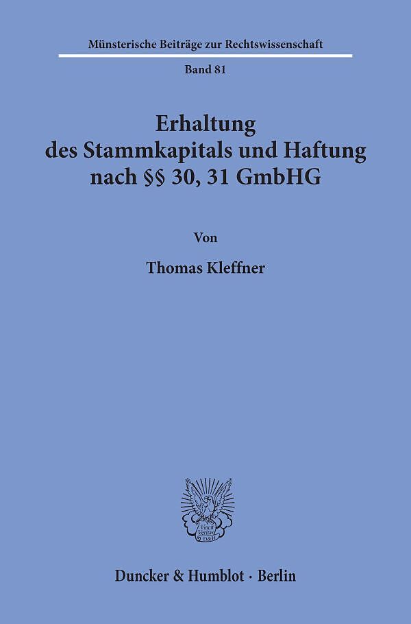 Erhaltung des Stammkapitals und Haftung nach §§ 30, 31 GmbHG.
