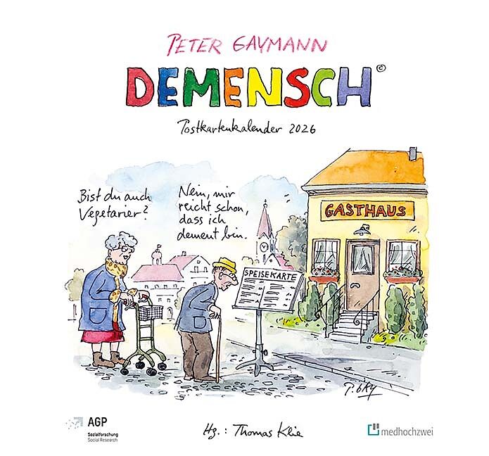 Humor, der berührt und zum Nachdenken anregt Mir reicht schon, dass ich dement bin! antwortet der Mann auf dem Cover des Demensch Postkartenkalenders 2026 auf die Frage, ob er auch Vegetarier sei. Ein Cartoon, der uns schmunzeln lässt und gleichzeitig mitten i...