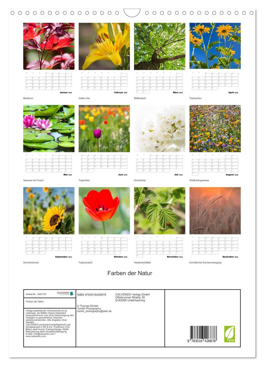 Farben der Natur (Wandkalender 2026 DIN A3 hoch), CALVENDO Monatskalender