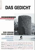 KARL KROLOWS LYRISCHES VERMÄCHTNIS Abschied von einem »Grand Seigneur« Die jüngste, buchstarke Ausgabe Nr. 7 der in Weßling (Landkreis Starnberg) erscheinenden Zeitschrift DAS GEDICHT steht zur Jahrtausendwende im Zeichen von »Abschied und Aufbruch«. »Abschied...KARL KROLOWS LYRISCHES VERMÄCHTNIS Abschied von einem »Grand Seigneur« Die jüngste, buchstarke Ausgabe Nr. 7 der in Weßling (Landkreis Starnberg) erscheinenden Zeitschrift DAS GEDICHT steht zur Jahrtausendwende im Zeichen von »Abschied und Aufbruch«. »Abschied« in konkretem Sinne nimmt das Redaktionsteam vom »Grand Seigneur« der deutschen Dichtung, Karl Krolow. Der Altmeister förderte die Zeitschrift von Anfang an und blieb ihr bis zuletzt verbunden. Am Tag vor seinem Tode im Juni 1999 schickte er seine letzten Gedichte zur Veröffentlichung nach Weßling. Unter dem Motto »Es bedarf des richtigen Codes / zur Heiterkeit des Todes« erscheint nun sein lyrisches Vermächtnis exklusiv in der aktuellen Folge von DAS GEDICHT. Krolows letzte Gedichte (das aktuellste entstand am 14. Mai 1999) zeugen von einer gelassenen Todesgewissheit und bewahren sich jene schwebende Leichtigkeit, für die ihr Verfasser so gerühmt wurde. »Vergänglichkeit ist so schnell«, heißt es in einer Verszeile, aber Herausgeber Anton G. Leitner begründet in seinem sehr persönlichen Nachruf, warum der »Wortschatz« aus dieser »poetischen Jahrhundertbiographie« noch lange seinen hohen Wert behalten wird. Seit fast einem Jahrzehnt begleitet das inzwischen mit mehreren Literaturpreisen ausgezeichnete Poesie-Magazin die Entwicklung der zeitgenössischen Dichtung mit einer informativen Mischung aus Erstveröffentlichungen namhafter Autoren wie auch unbekannter Talente, mit Diskussionen, provokativen Essays, einer Fülle von Rezensionen und praktischen Tipps zum Literaturbetrieb. Ein zehnköpfiges Redaktionsteam aus Deutschland, Österreich, der Schweiz und Luxemburg unterstützt die Arbeit von Herausgeber Anton G. Leitner und Chefredakteur Ulrich J. Beil. Die Redaktion DAS GEDICHT bricht mit einer »Hitliste der Jahrhundertdichter« ins Jahr 2000 auf und stellt ihre Millenniums-Ausgabe unter das Motto »Poesie als Grenzüberschreitung«. Von einer »Führung durch den Bildersaal der Literatur« über »Dichtung als Droge« bis hin zu einer Lampe, die Licht und Poesie vereint, reicht das Spektrum. Und natürlich druckt das Magazin wieder zahlreiche Gedichte als Erstveröffentlichungen, darunter Italiens »Stimme« Mario Luzi, Chicagos führende Slam-Poeten oder Manfred Peter Hein, Thomas Kling, Johannes Kühn, Günter Kunert, Friederike Mayröcker, Oskar Pastior, Robert Schindel und viele andere. Eine scharfe Polemik des Herausgebers, 50 Kritiken zu Neuerscheinungen und 200 weitere Lektüreempfehlungen zeugen davon, dass gute Zeiten für die Lyrik anbrechen. Inhalt und Editorial DAS GEDICHT 7 als PDF L Y R I K Ahrens, Ani, Eichhorn, Gräf, Hein, Kling/Catuull, Kofler, Krolow, Kühn, Kunert, Lentz, Marti, Mayröcker, Neumann, Pastior, Riha, Schindel, Schutting, Stahl, Urweider u. a. Special: Mario Luzi zum 85. Geburtstag Slam Poetry: Szene Chicago - Gibson, Salach, Smith Hitliste: Die 100 wichtigsten Dichter des 20. Jahrhunderts E S S A Y Poesie als Grenzüberschreitung - Genie und Wahnsinn, Dichtung als Droge, Bildersaal der Literatur, Lichtpoesie Polemik: Abpfiff für eine Dichterriege! Kommentierte Bibliographie Lyrikjahr 1999
