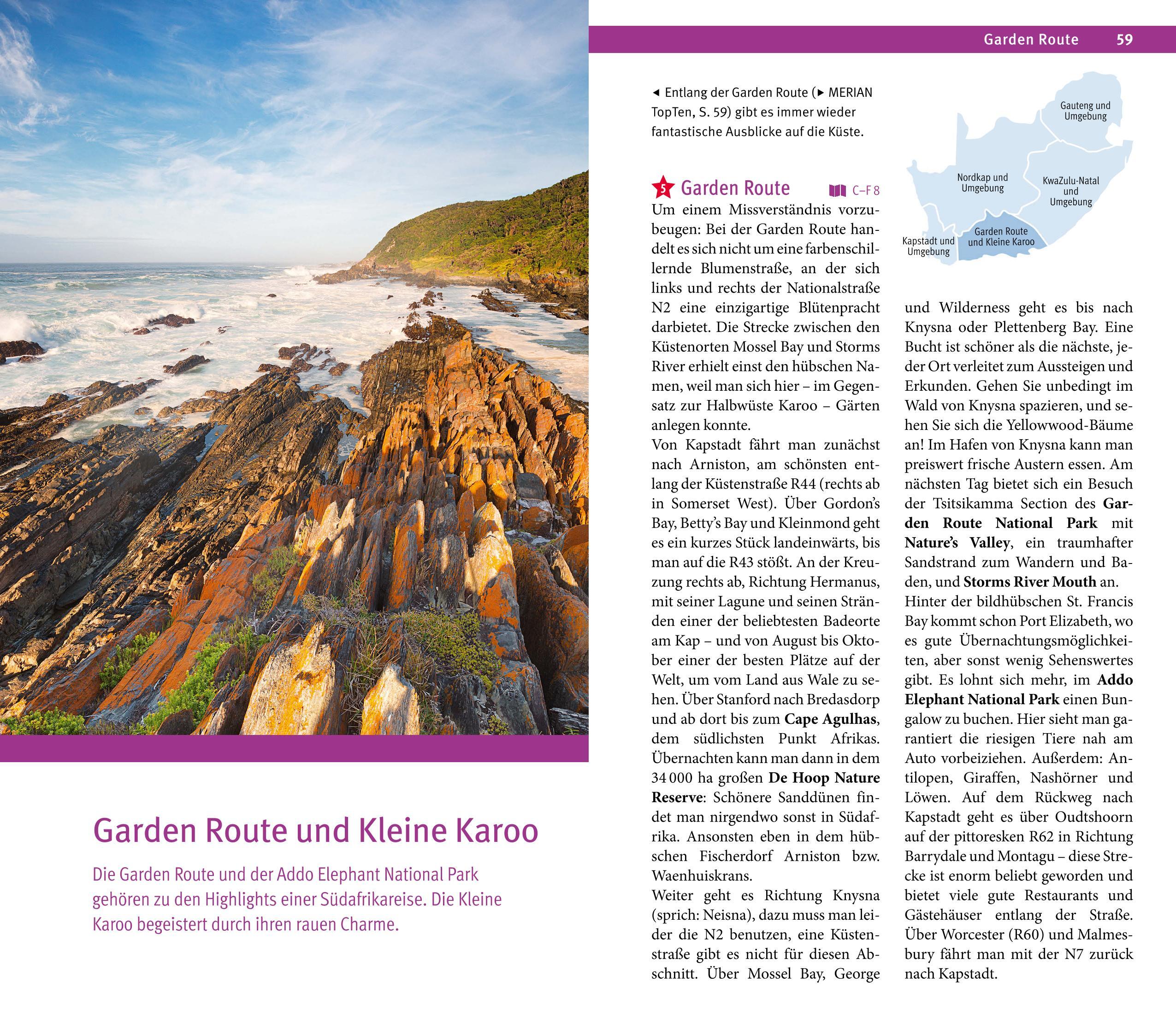Mit MERIAN live! die Welt entdecken Sonne von Oktober bis April, blühende Gärten, Wüsten und Savannen, einsame Strände, wildes Meer, liebliche Weinregionen und hohe Berge - das ist Südafrika! Die Stille der Wildnis findet man genauso wie umtriebiges Stadtleben...