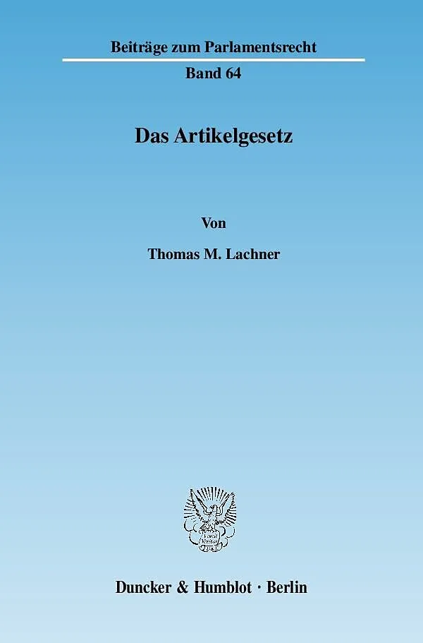 Thomas M. Lachner identifiziert und untersucht einen Teilbereich der Gesetzgebung, der bislang kaum wahrgenommen wurde, obgleich er jedem Rechtsanwender häufig begegnet: Das Artikelgesetz. Nach der Terminologiebestimmung folgen die Darstellung von Charakterist...
