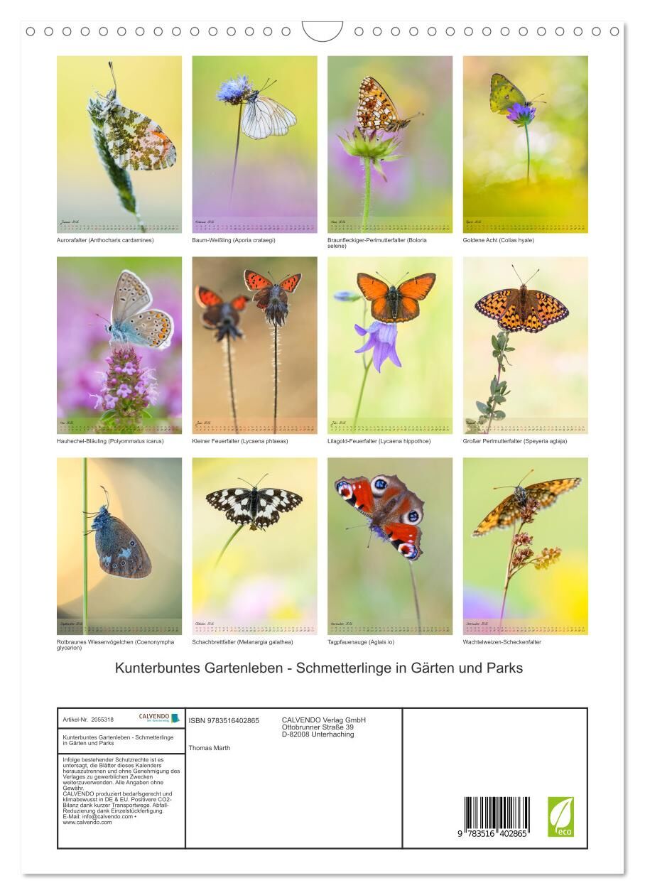 Kunterbuntes Gartenleben - Schmetterlinge in Gärten und Parks (Wandkalender 2026 DIN A3 hoch), CALVENDO Monatskalender