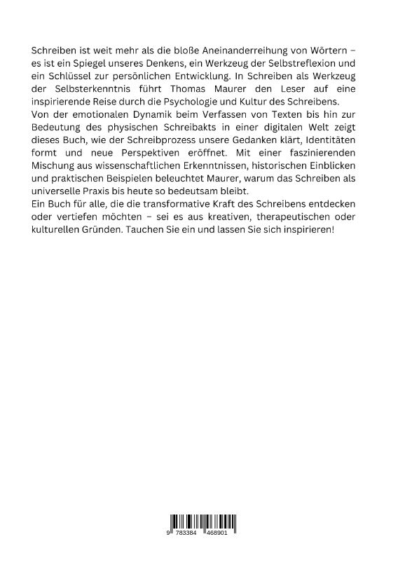 Schreiben ist weit mehr als die bloße Aneinanderreihung von Wörtern es ist ein Spiegel unseres Denkens, ein Werkzeug der Selbstreflexion und ein Schlüssel zur persönlichen Entwicklung. In Schreiben als Werkzeug der Selbsterkenntnis führt Thomas Maurer den Lese...