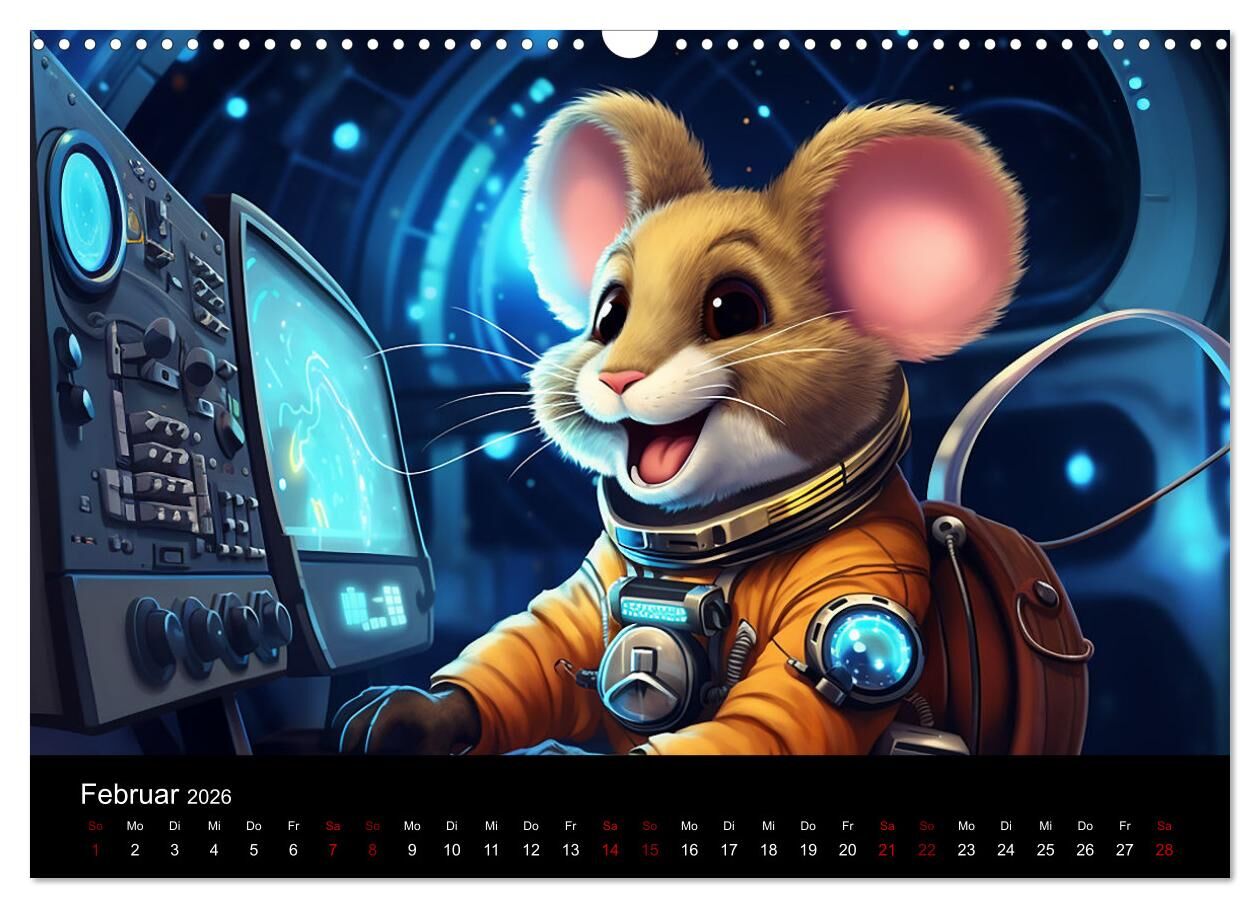 Tauchen Sie ein in eine Welt voller süßer Entdecker! Unser Kalender "Mäuse im All: Eine kosmische Reise" entführt Sie in ein Comic-Abenteuer, das so einzigartig ist wie niedlich. Jeder Monat enthüllt eine entzückende Maus im Raumanzug, die sich auf intergalakt...