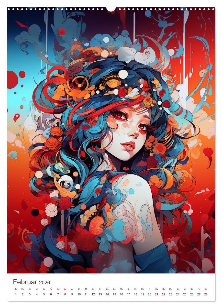 Willkommen in der bezaubernden Welt von "Manga Style"! Unser Kalender entführt dich in die Schönheit japanischer Manga-Designs, wo kunstvoll gestaltete Charaktere vor einem Farbrausch bunter Hintergründe erstrahlen. Jeder Monat präsentiert einzigartige Gesicht...