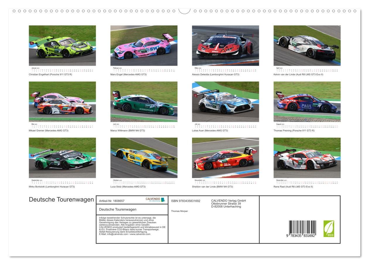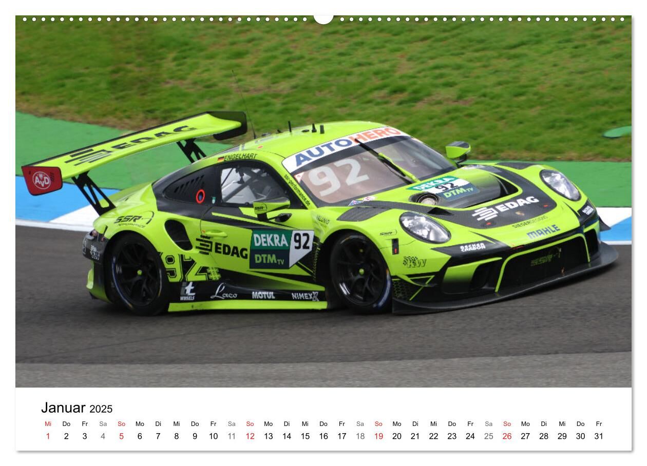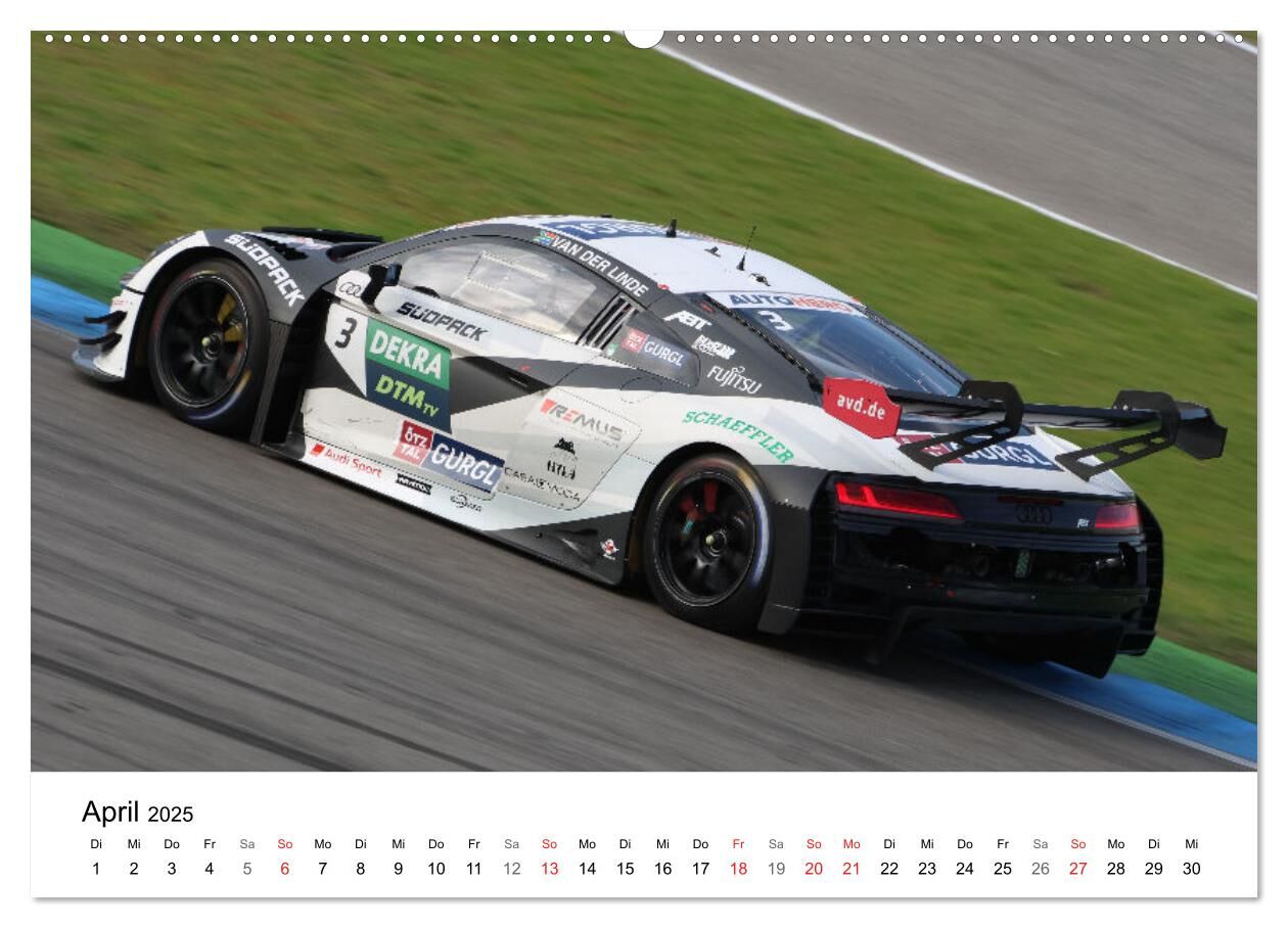 Kalender mit Fotos aus der DTM Saison 2022. Neben den traditionell in der DTM vertretenen Herstellern Audi, BMW und Mercedes nun auch mit GT3 Fahrzeugen von Porsche und Lamborghini.