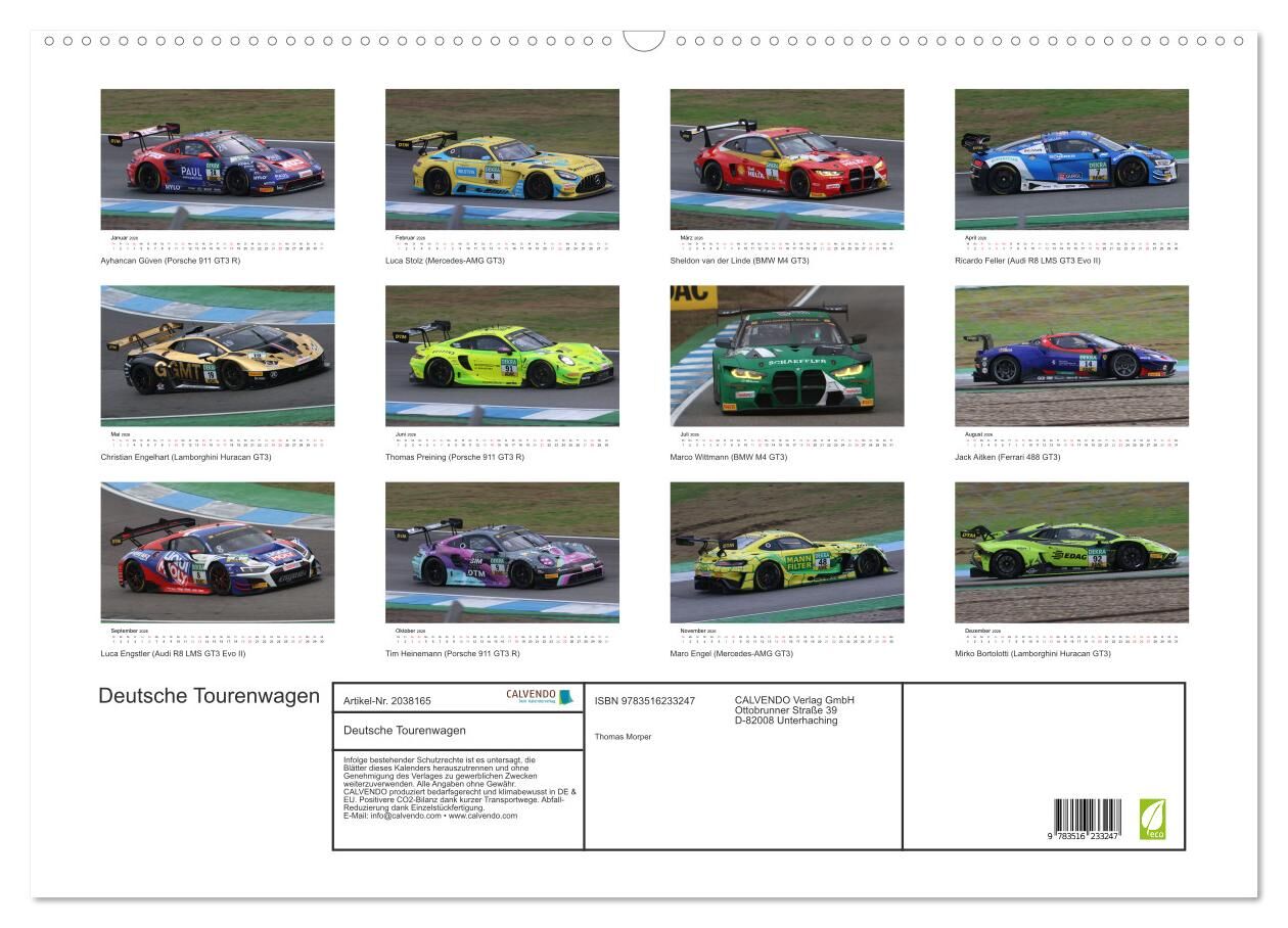 Kalender mit Fotos aus der DTM. Neben den traditionell in der DTM vertretenen Herstellern Audi, BMW und Mercedes nun auch mit GT3 Fahrzeugen von Porsche und Lamborghini.