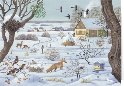 Ein netter Adventsgruß mit 24 kleinen Türchen auf der Vorderseite der Karte. Nur erhältlich als Verkaufseinheit mit 20 Karten plus farbigen Umschlägen. Diese adventliche Grußkarte lädt auf Entdeckungsreise in die verschneite Winterlandschaft ein. Wo verstecken...