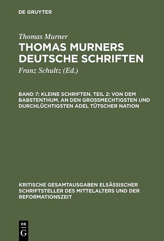 Thomas Murner: Thomas Murners deutsche Schriften / Kleine Schriften. Teil 2: Von dem babstenthum. An den Grossmechtigsten und Durchlüchtigsten adel tütscher nation