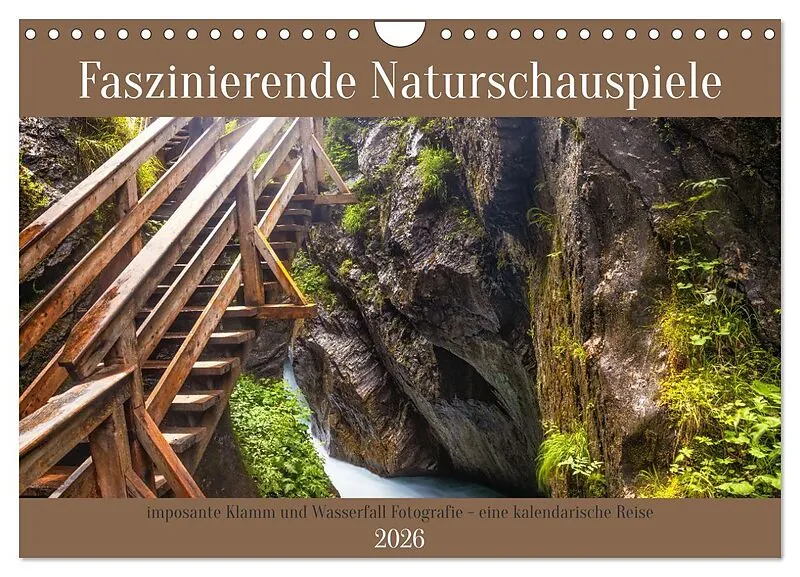 Kalendarische Reise mit technisch und kompositorisch hochwertigen Klamm und Wasserfall Landschaftsaufnahmen. Atemberaubende Natur, beeindruckendes Voralpenland, tolles Bergpanorama sowie vor allem faszinierende Naturschauspiele: all dies festgehalten in besond...